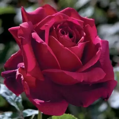 Rose Oklahoma Hybrid tea rose is one of the most highly fragrant and darkest red roses available. It has very large flowers from long, ovoid buds with high centres and perfect symmetry. Borne on single stems, the heavy flowers are sometimes 15cms across and there are more than 40 very highly fragrant petals in each flower.